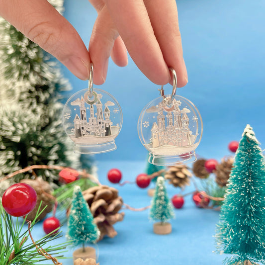 Snow Globe Hoops Earrings (Silver & Pink)