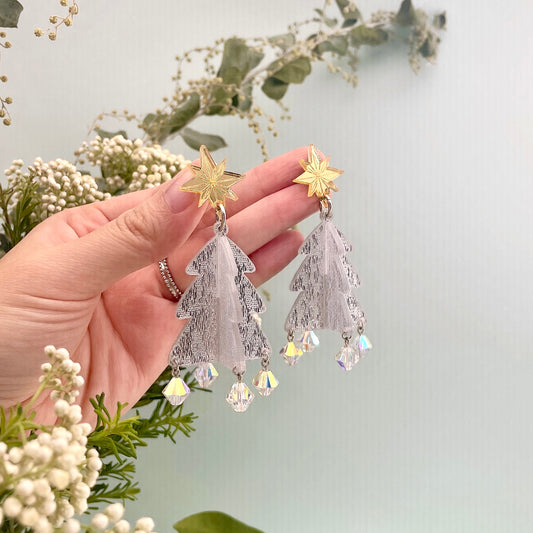 Snowy Xmas Tree Dangle Earrings