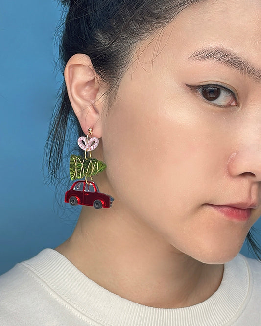 Car Carrying Xmas Tree Dangle Earrings